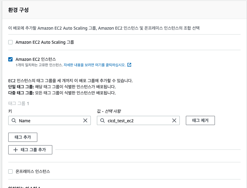 - Code Deploy에서 배포할 앱과 해당 앱에 설정할 배포 그룹을 생성