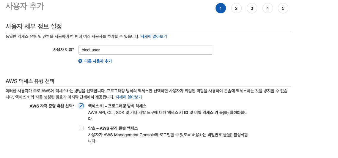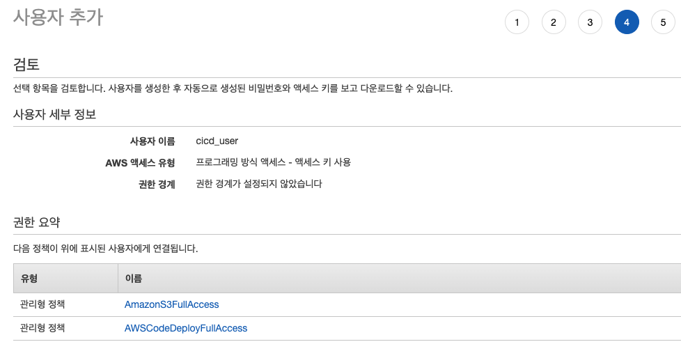 - github actions가 발생했을 때 S3로부터 압축파일을 가져오고 배포를 해 줄 IAM 사용자가 필요함.