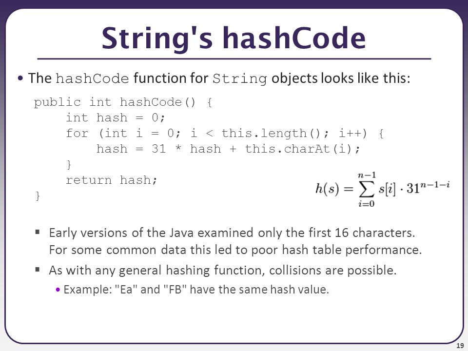 - 위 String의 hashCode()는 다항식을 쉽게 계산하는 로직임