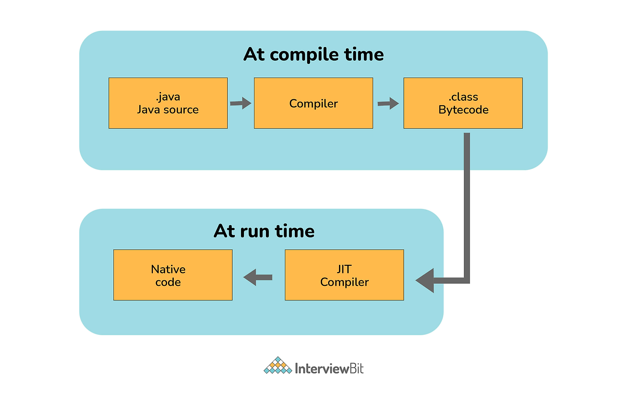 - JVM의 Excution Engine이 JVM 메모리로 올라온 class 파일을 기계어로 변환한 뒤 CPU에서 처리되는 방식이다.