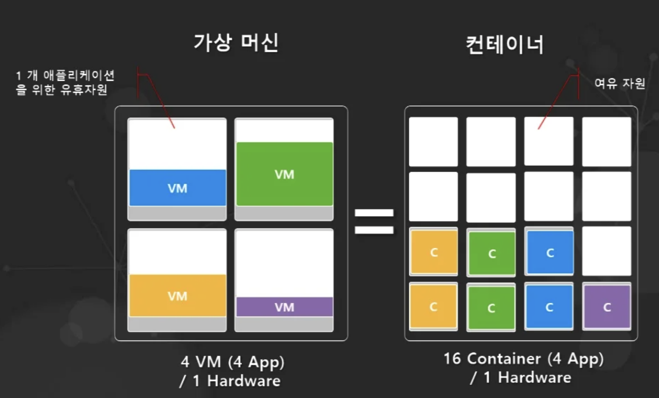 +) 컨테이너와 VM의 차이 - 자원 활용
