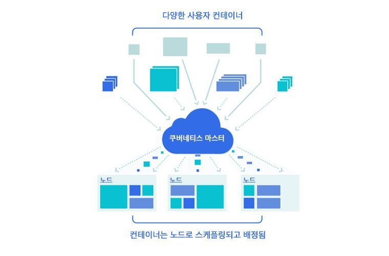 - 수많은 컨테이너들을 worker 노드에 분산, 배치 (같은 컨테이너는 최대한 다르 노드에 분산)
