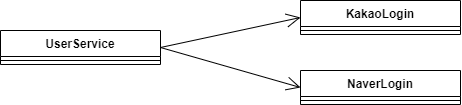 [예제1]과 [예제2] 코드의 가장 큰 차이점은 UserService 객체와 각 Login 객체와의 의존도(dependency) 정도의 차이이다. [예제1]의 경우 UserService 객체는 KakaoLogin 객체와 NaverLogin 객체에 직접적으로 의존하고 있어 의존도가 높은 코드이다.(bad code)