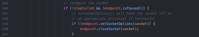 - stop이나 pause 상태가 아니면 소켓에 대한 설정을 진행한다. (line 149)