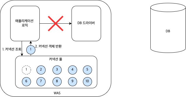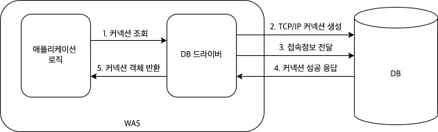 - 매번 WAS에서 TCP/IP 커넥션을 생성하는 것은 리소스 소모가 크다.