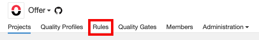 5. 연동이 완료되면 대시보드 화면이 나오고 이 중에서 Rules탭을 선택해서 언어별로 정적 분석할 Rule들을 관리할 수 있다.