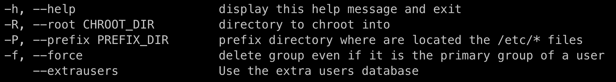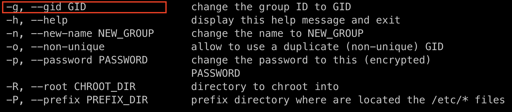 * 보통 group 관련 커맨드는 특별한 옵션이 없음. GID를 생성하거나 변경하는 -g 옵션이 대부분일 것