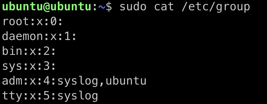 sudo cat /etc/group