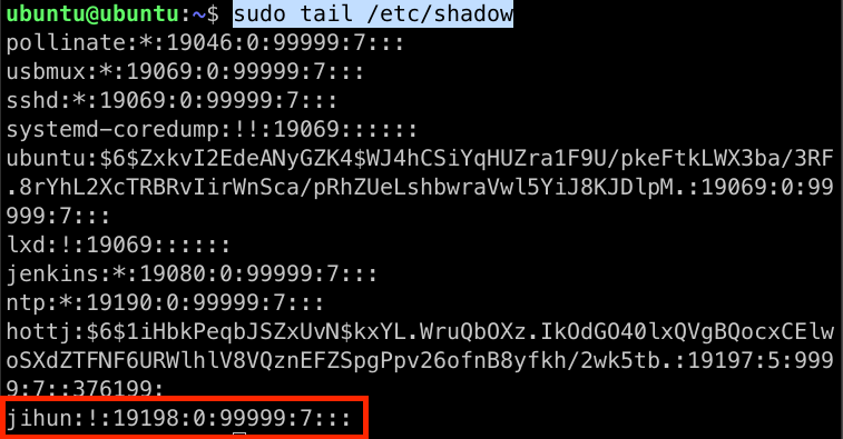 이후 다시 tail 명령어로 /etc/passwd 파일을 확인해보면