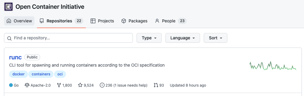 OCI의 GitHub Organization에서 볼 수 있듯이 OCI에서 runC를 직접 관리하고 있는 것 같다.
