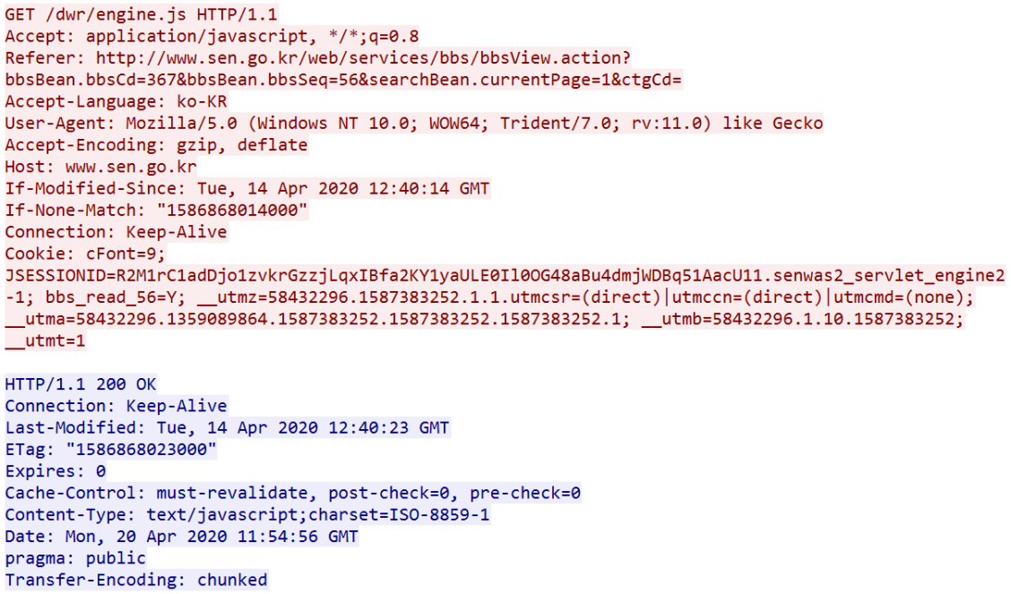[그림10]은 서울시교육청 홈페이지의 자주묻는질문 베너의 URL을 접속했을 때 오고 간 요청 응답 메시지의 헤더부분이다. Server의 Content Data가 갱신되어 Cache에 저장된 Content가 최신의 것이 아닐 경우의 예를 보여준다. 우선 요청 메시지를 보면 ’If-Modified-Since’필드 값을 통해 2020년 4월 14일 12:40:14 이후로 Server의 데이터가 갱신되었는지 묻는 요청 메시지를 보낸다. 응답 메시지를 에서 Status line의 ‘200 OK’상태를 보아 서버의 데이터가 갱신되었음을 알 수 있고, 이 경우 서버는 갱신된 데이터를 바로 Client에게 보내준다. 추가적으로 응답 메시지의 ‘Last-Modified’필드 값은 가장 마지막 Content가 수정된 날짜와 시각인데, 응답 메시지에서 보낸 ’If-Modified-Since’필드 값과 다른 값(정확히 말하면 서버가 더 최신의 시간정보)을 갖으므로 캐시의 데이터는 최신의 것이 아니다. 이 경우, 서버는 응답으로 최신의 Content를 보낸다.