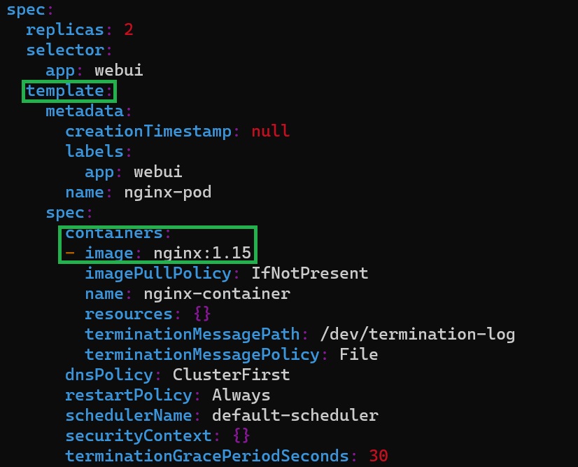 즉, template은 새로운 Pod를 생성할 때 사용되는 필드임을 확인할 수 있다. 이를 활용하면 RC를 기반으로도 Rolling Update를 할 수 있지만 여러 개의 Pod를 한 번에 진행하기에는 어려움이 있을 것이라 생각한다.