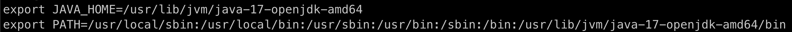 컨테이너에 접속해 jdk를 새로 설치하고 JAVA_HOME 환경변수를 설정한다. 모든 리눅스 유저에 적용하고 싶다면 /etc/profile에, 특정 유저에만 적용하고 싶다면 ~/.bashrc에 아래 내용을 append한다.