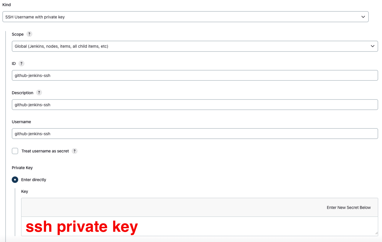github-jenkins-ssh는 key 이름 부분이니 사용할 이름에 맞게 수정하면 된다.