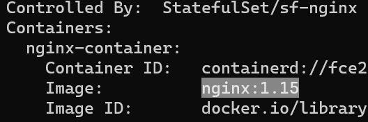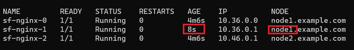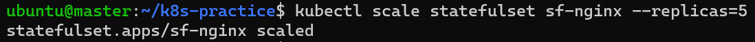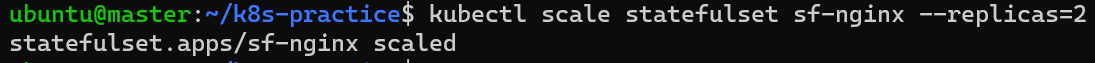 - 특히, 기존에는 node2에서 실행되었으나 지금은 node1에서 실행되었다. 즉, StatefulSet은 노드의 위치는 보장하지 않는다.