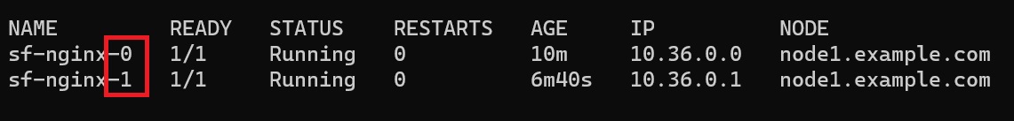 - 위와 같이 Pod가 0번부터 시작하여 순차적으로 이름이 생성되었다.