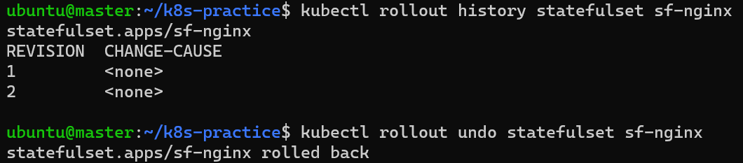 - DaemonSet, Deployment와 마찬가지로 rollout undo 커맨드를 사용한다.