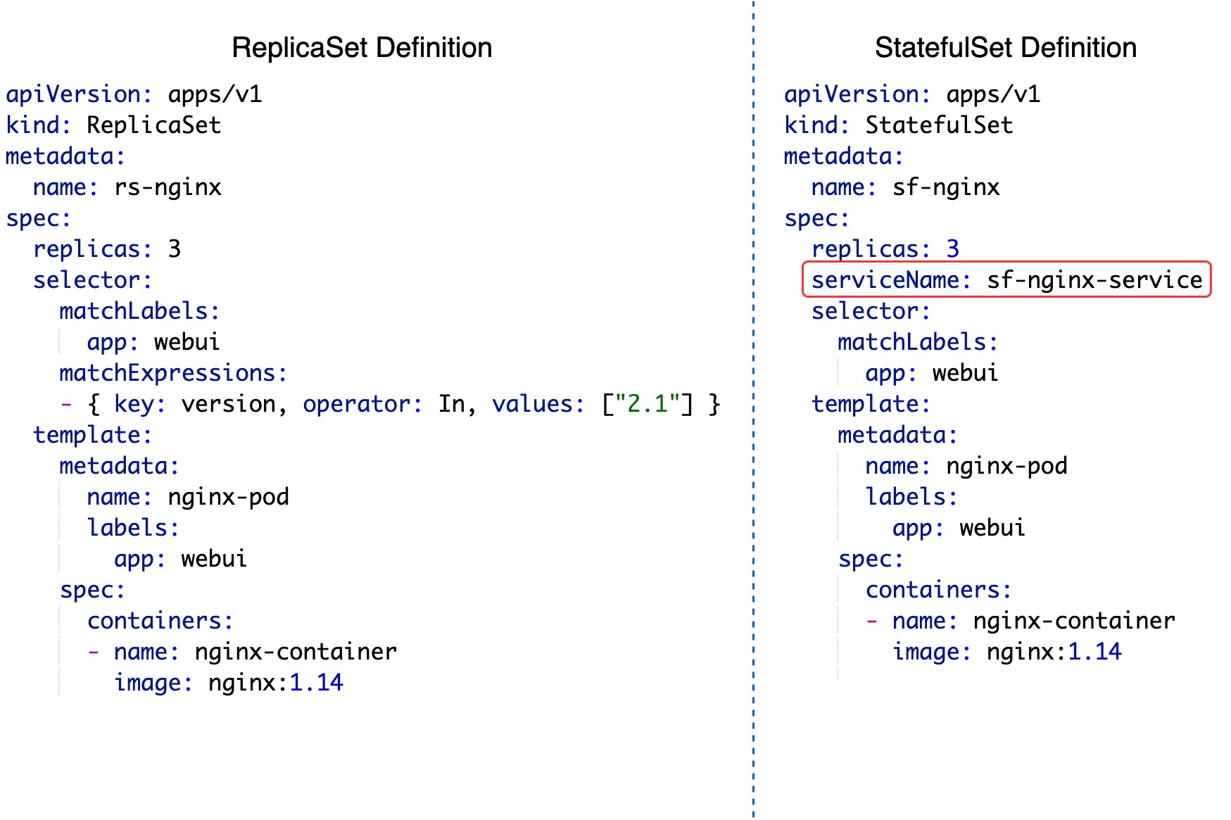 만약 0, 1, 2번 Pod가 운영 중이고 1번 Pod에 문제가 생겼다면 1번 Pod가 완전히 삭제될 때까지 기다렸다가 1번이라는 이름을 가진 Pod를 그대로 다시 실행시킨다. 알아 두어야 할 것은 StatefulSet은 DaemonSet과 다르게 노드 당 1개의 Pod를 보장하지는 않는다는 것이다. 즉, 어느 노드에 Pod가 다시 실행될지는 모른다. StatefulSet은 Pod 이름을 보장하는 역할을 한다는 것을 기억해야 한다. 이렇듯 StatefulSet 컨트롤러를 사용하면 Pod의 이름을 보장해줌으로써 몇 번의 Pod가 생성되고 삭제될 것인지를 쉽게 알 수 있다는 장점이 있다.