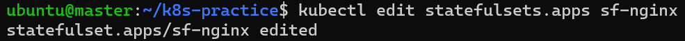 - edit 커맨드로 실행 중인 StatefulSet을 수정한다.