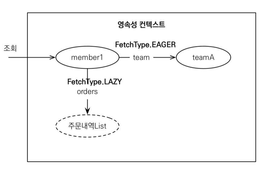 - JPA는 프록시 객체라는 기술을 이용해 연관된 객체를 처음부터 데이터베이스에서 조회하지 않고, 실제 사용하는 시점에 SELECT 쿼리를 통해 조회할 수 있다.