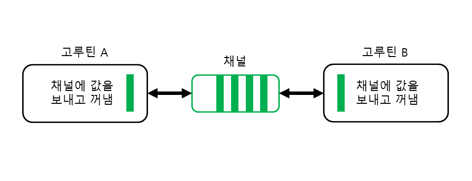 - 위 메커니즘을 이용해 abc, def 고루틴은 자신의 실행 흐름을 제어할 수 있다.